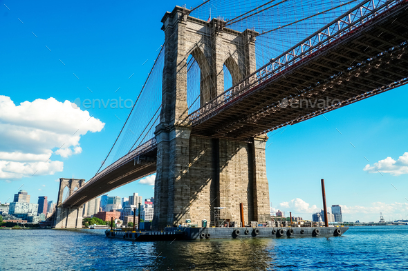 Brooklyn bridge with Brooklyn area skylines during a day