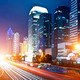 moving car with blur light through city at night