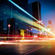 moving car with blur light through city at night