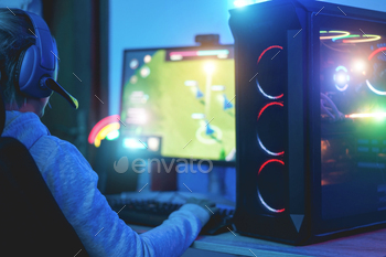 Gamer playing at strategy game while streaming online - Young people having fun with technology
