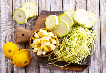 raw zucchini and patisons on board