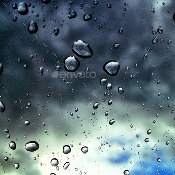Raindrops on a widescreen with a dramatic sky