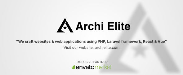 Archi Elite is a software company. We craft websites & web applications using PHP, Laravel framework, React & Vue. Are you interested? Check out our awesome product at: https://codecanyon.net/user/archielite/portfolio