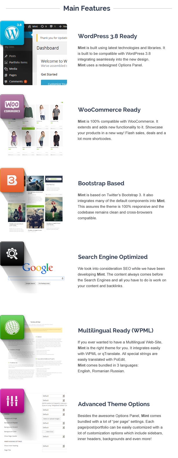 Mint is a Clean, Flexible, fully responsive and retina ready Wordpress theme. Its smart and hand crafted environment allows you to Build outstanding websites easy and fast.
