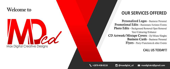 At Max Digital Creative Designs we provide Professional Graphic Services. We offer services such as: Logos / Flyers / Business Cards / Letterheads / Promotional Edits / Photo Edits / Mixtape and Cd Artwork